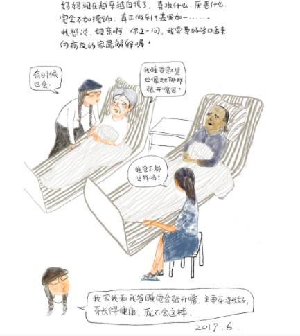 在她的叙述与画作里,爱是挫败与痛苦中的自我生长,也是困境中的相互抚照。这或许正是凯博文所说的“照护的灵魂”——无论面对怎样的疾病,我们都能给予彼此坚定陪伴的承诺。