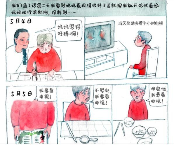 最初妈妈大部分时间都能够按照作息表安排,每天读书、画画、写字的时间大约有4个小时左右。只是妈妈每次在写字、画画时嘴里喜欢念念叨叨,有时候妈妈会很不安心,常常读两句就要看电视,写几个字又要看电视,但是只要不断告诉她她的任务还没有完成,她就会很乖地去读书或者写字。这种情况反反复复,我们始终没有找到其中的规律来,并且妈妈不安心的情况越来越密集了。