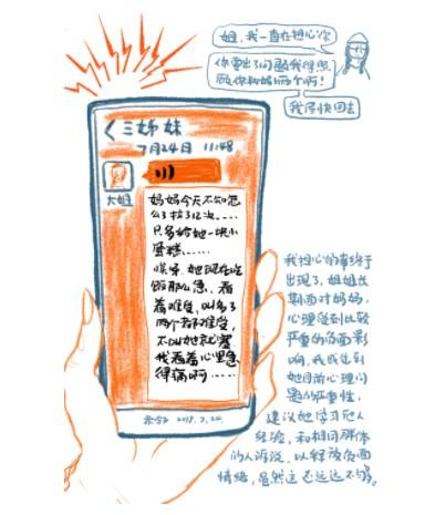 其实妈妈以前也阶段性出现过吃饭特别快,一口没完又接一口的情况,但这次让姐姐格外焦虑。我担心的事情发生了。姐姐心理积攒的负面情绪太多,已经到了不堪重负的地步了。
