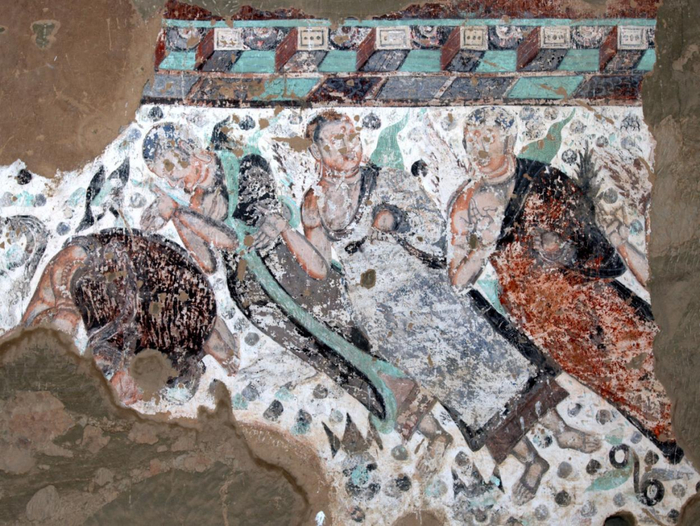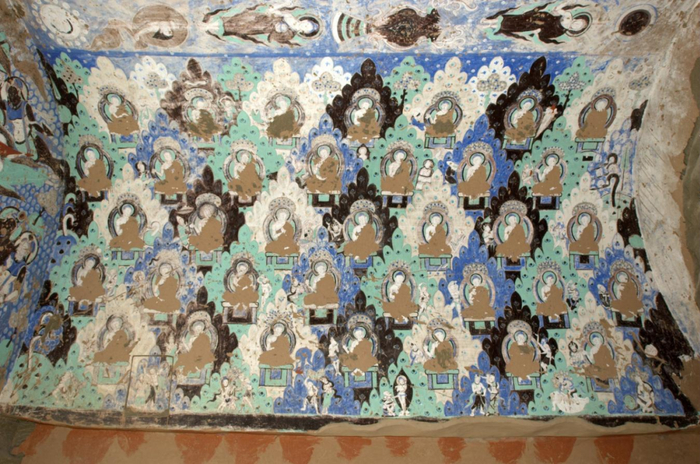 克孜尔石窟又称克孜尔千佛洞或赫色尔石窟,属中国佛教石窟,位于新疆拜城县克孜尔镇东南7千米明屋塔格山的悬崖上。克孜尔石窟是我国最早开凿的石窟群,类型丰富,是龟兹石窟的代表,它以独特的洞窟形制和壁画风格,明显揭示出佛教经西域地区由西向东的传播轨迹,以及在传播过程中所形成的本土化过程,是丝绸之路上最重要的佛教遗迹之一。克孜尔石窟群总体走向呈东西向,绵延约3公里。现有编号洞窟总数为349个,有壁画的80个,壁画面积约4000平方米。根据地下探测,地底还埋藏有一批洞窟。石窟壁画题材丰富,内容广泛,主要是围绕释迦牟尼的诸事迹,包括本生故事、因缘故事和佛传故事及弥勒兜率天宫说法等。本生和因缘故事均有100余种,佛传故事也有60多种,被誉为“故事画的海洋”。此外,天相图、天宫伎乐、飞天和供养人也很有特色,晚期洞窟出现了“千佛”等大乘佛教内容。