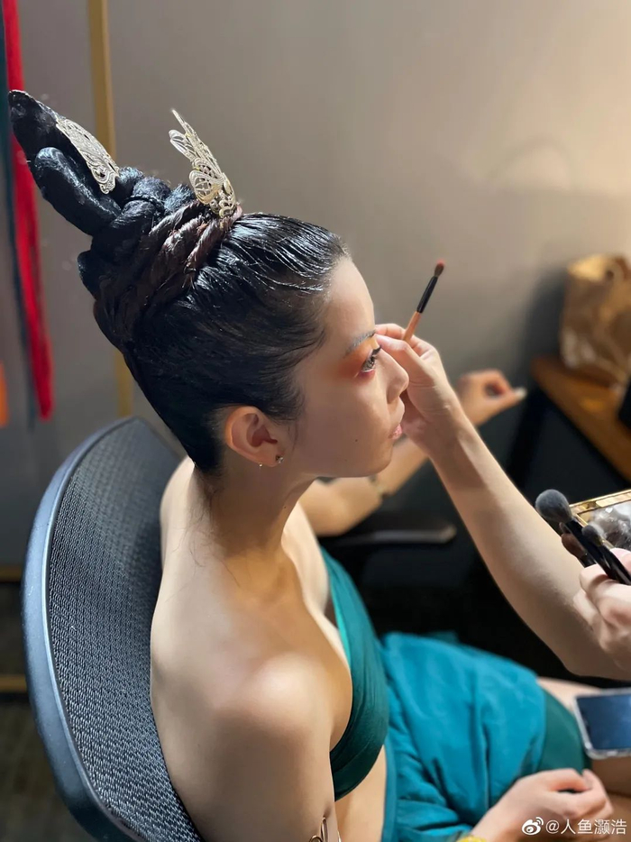 5月24日就去连夜练舞了。练完舞出来之后,编导觉得可能舞蹈的整体效果不会很震撼,我就又买了机票,当天往返上海,专门去找了舞蹈老师去训练。第一次修改过后的舞蹈参考了《丽人行》,又跟晚会的另一个节目撞了,于是只能再推翻重排,这时已经到了5月30日。最终的版本是我从5月31日飞上海,6月1日拍定妆照,6月2日用了一天的时间练舞,6月3日开始拍摄,直到8日才完全拍完。