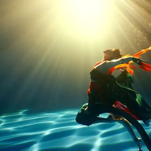 水下动作干净很重要,因为我是个“神”,我不可能是犹豫不决的,那么我的动作也不会拖泥带水,但凡有一点卡顿,或者说表情没有到位的地方都要重拍,运气好的话至少两条,如果运气不好,纱缠得非常严重的话,我们就需要拍5到6次。