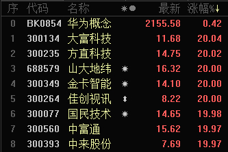 然而今日,资金仍然集中进攻科技板块,虽鸿蒙“四大金刚”未能继续连板,但华为概念板块仍有多只个股掀涨停潮。
