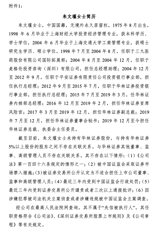原标题:华林证券多位高管变动:朱文瑾任副董事长、韦洪波出任总裁