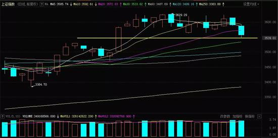 牛眼君(每经牛眼:njcjnews)注意到,今日是自5月25日长阳线展开横盘以来,首次收出未能接触到3600点的向下运行阴线,并且K线最低位接近5月25日长阳线的中位。在5、10、20日均线均被击穿的情况下,显然短线难有乐观的想法,如果周内不能快速收回3600点,恐怕下行考验5月25日长阳线起点(即3500点)支撑的可能性将大大增加。