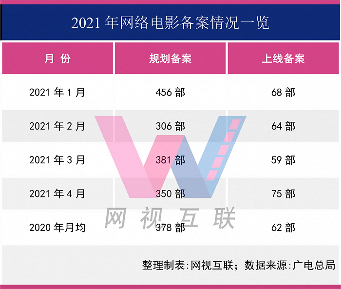 6月9日,广电总局公布了2021年4月份重点网络影视剧规划备案情况,其中通过规划备案的网络电影共350部,现实题材占比为69.4%。