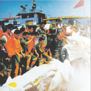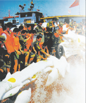 8月7日13时50分,长江九江大堤决口,决口位于九江市城区长江大堤上游段4~5号闸口之间。中央军委紧急调动,南京军区、北京军区解放军和福建、江西武警部队联合作战,于12日18时成功堵口。