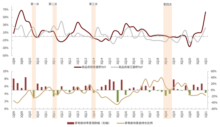 图表:历史上,家电板块投资受地产后周期明显影响