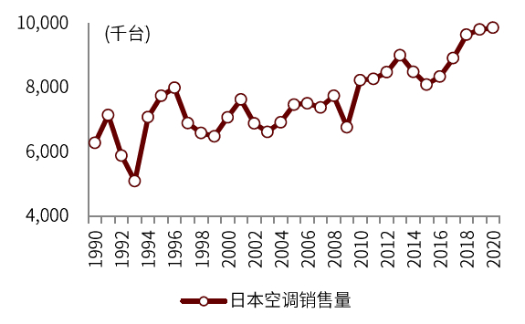 图表:日本空调1990年-2020年销量增长57%
