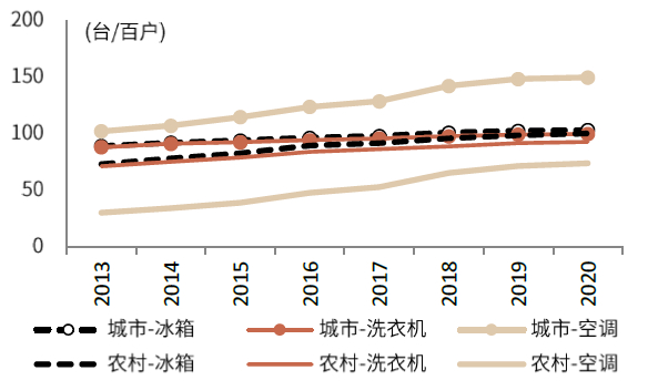 图表:中国冰箱、洗衣机、空调保有量提升
