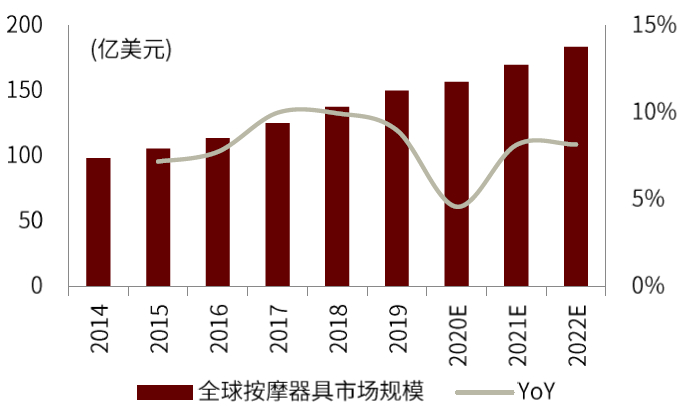 图表:全球按摩器具规模及增速