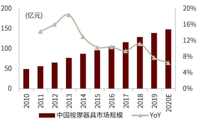 图表:中国按摩器具市场规模及增速