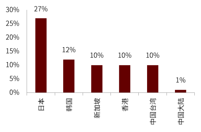 目前中国按摩椅市场渗透率仅约1%,与东亚、东南亚其他地区比还有很大的差距。全球按摩椅市场,日本、韩国都是本地品牌主导,中国市场过去由傲胜(新加坡品牌主导),目前在中国高端市场形成了奥佳华、荣泰、傲胜的三强格局,在线上市场品牌众多。