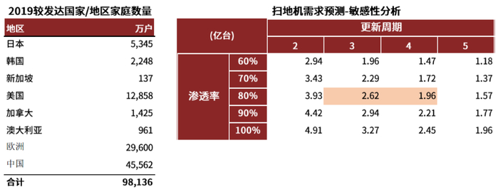 图表:全球吸尘器、洗地机潜在需求测算