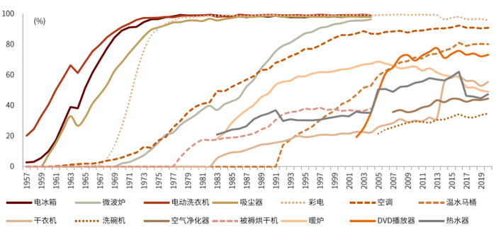 由于人群消费层次不同,家电新产品最终普及率低于普及型大家电,但我们认为新品类会成为家电需求重要的增长点,并且为市场贡献大量细分赛道投资机会,中国市场正在经历这一过程。