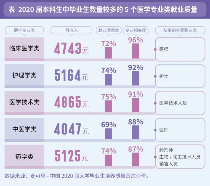 近年来伴随人们对健康的重视,加之2020年突如其来的疫情影响,医学类专业成为报考热门。行业稳定、社会地位高、收入好,似乎是当下对医学毕业生未来工作的普遍认识,实际上他们的就业质量如何?