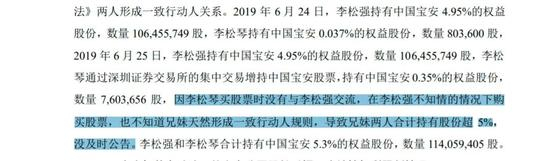 然而,兄妹俩作为一致行动人,在买入中国宝安股票达到5%时,未停止买入公司股票并及时履行报告、公告义务,直到2019年12月24日才通过中国宝安披露《简式权益变动报告书》,且在上述信息披露前李松琴仍买入中国宝安38000股、卖出1300股。