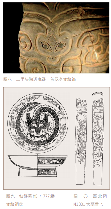 新砦龙纹饰的年代略早于二里头绿松石龙,依据两者的龙首特征相同,可以认为二里头绿松石龙的龙首是由新砦龙纹饰演变而来。