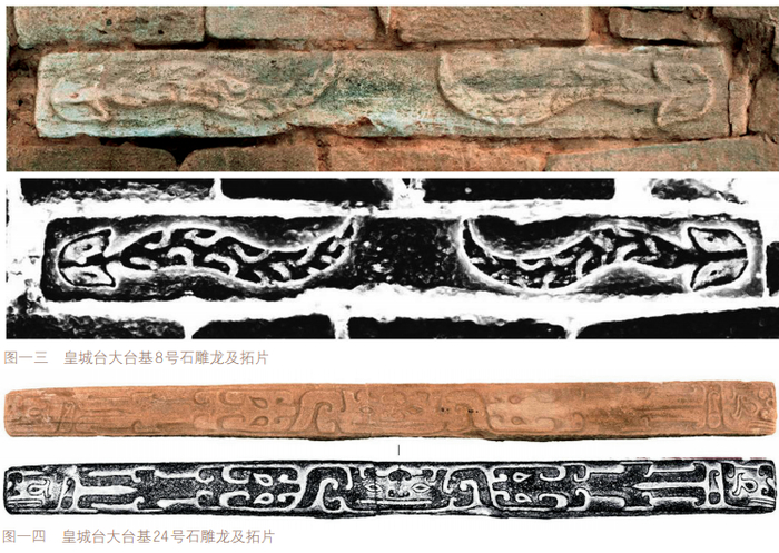 由于二里头绿松石龙与商代的龙图案存在着早晚演变关系,而皇城台大台基 8 号、24 号石雕龙与商代的龙图案不存在直接的演变关系,由此表明皇城台大台基8号与 24 号石雕龙要早于二里头绿松石龙。