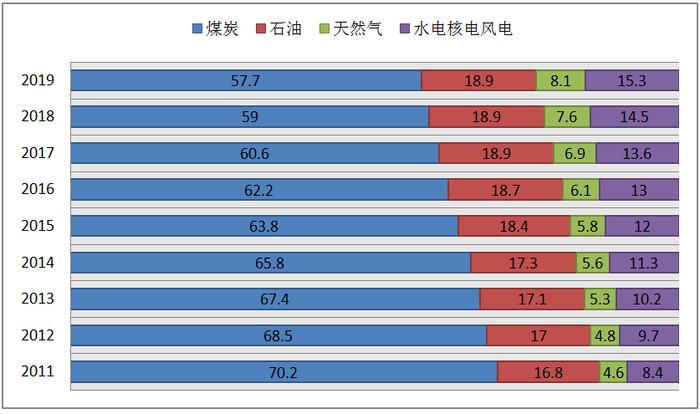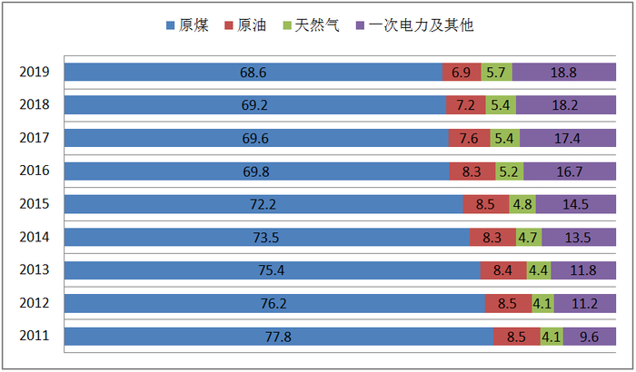 图1-9 2011~2019年能源生产结构(%)