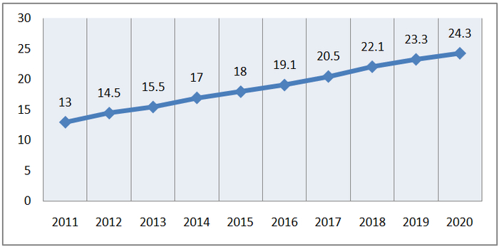 图1-2 2011~2020年人均国内生产总值