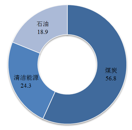 2020年,煤炭消费量占能源消费总量的56.8%,比上年下降0.9个百分点;天然气、水电、核电、风电等清洁能源消费量占能源消费总量的24.3%,上升1.0个百分点。