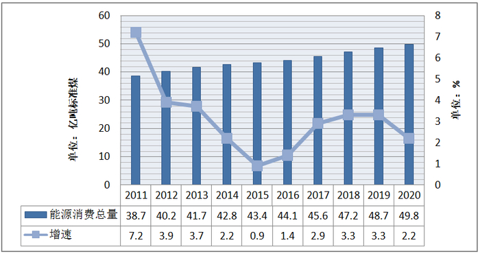 图1-11 2011~2020年能源消费总量及增速