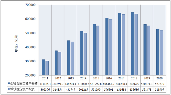图1-6 2011~2020年全社会固定资产投资