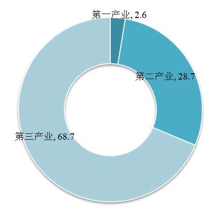 2020年,第一产业增加值77754亿元,增长3.0%。第二产业增加值384255亿元,增长2.6%。第三产业增加值553977亿元,增长2.1%,其中信息传输、软件和信息技术服务业增长16.9%。