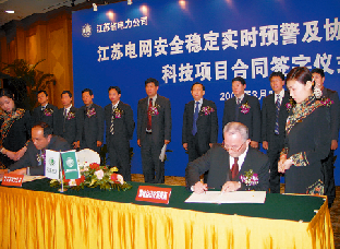 2006年3月1日,江苏电网安全稳定实时预警及协调防御系统科技项目合同签字仪式现场。