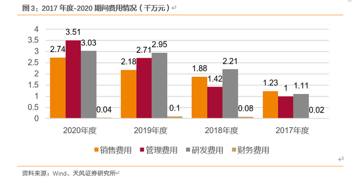 2017 年、2018 年和 2019 年,公司期间费用分别为 3,362.48 万元、5,587.41 万元和 7,939.85 万元,占营业收入的比例分别为 14.74%、12.73%和 13.99%,期间费用率基本保持稳定。