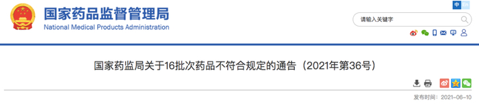 关于16批次药品不符合规定的通告