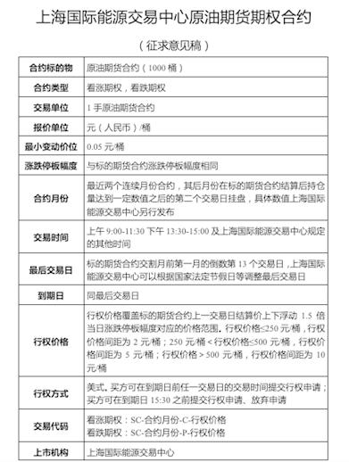 原油期权将沿用标的原油期货的相同路径,作为特定品种上市交易,采用与原油期货基本相同的交易、结算和风控等制度以及技术系统,并与原油期货在同一平台运作,面向全球投资者开放。