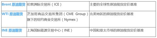 伦敦洲际交易所(ICE)的Brent原油期货是主要的全球性基准原油合约。目前,全球有65%的原油现货交易锚定Brent原油期货定价。