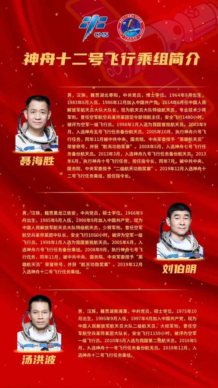 央视新闻消息,记者从神舟十二号载人飞行任务新闻发布会获悉,经总指挥部研究决定,瞄准北京时间6月17日9时22分发射神舟十二号载人飞船,飞行乘组由航天员聂海胜、刘伯明和汤洪波组成,聂海胜担任指令长。航天员聂海胜参加过神舟六号、神舟十号载人飞行任务,航天员刘伯明参加过神舟七号载人飞行任务,航天员汤洪波是首次飞行。今天上午,执行此次发射任务的长征二号F遥十二火箭将加注推进剂。