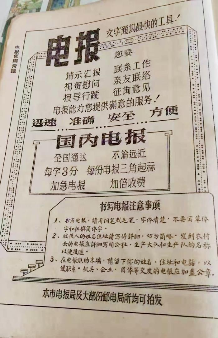 1956年,上海电信局正式开放用户电报;1957年开放了传送设计图纸、报表、合同文件、国内国际相片传真等真迹的新业务;1964年6月,上海已具备46路国际电报电路,通达27个国家、29个城市;1978年上海电报电路增加到201路。