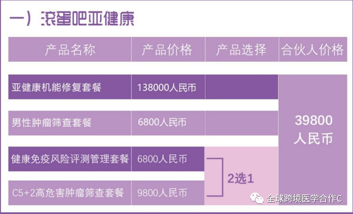 此套餐主要主要是由2次干细胞调理全身亚健康为核心基础服务项目,人体免疫管理套餐、男女肿瘤筛查套餐、三高基因筛查套餐为辅助的家庭亚健康管理服务项目。
