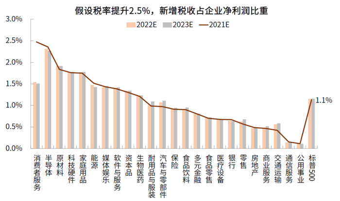 图表:假设提升2.5%,2021年预计影响标普500净利润1.1%