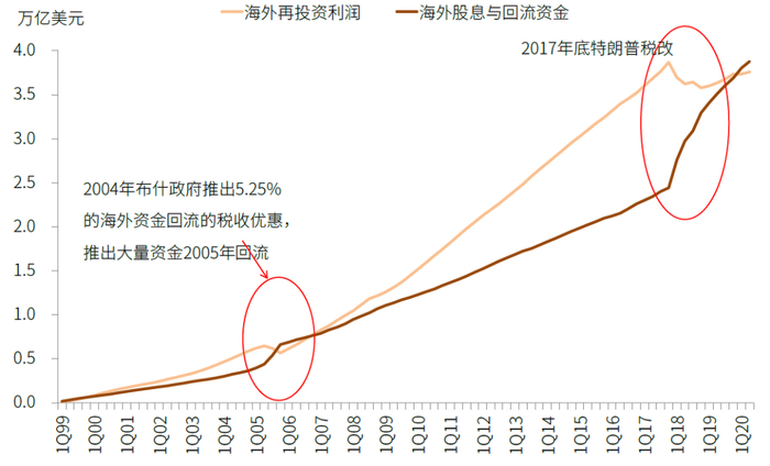 图表:2004年和2017年两次税收优惠和税改均促使资金流入美国,但本次可能不一样