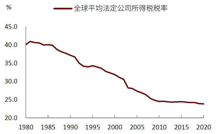 图表:全球平均法定公司税率近40年持续下降