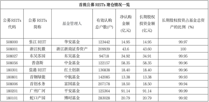 首批公募REITs全部满仓上市