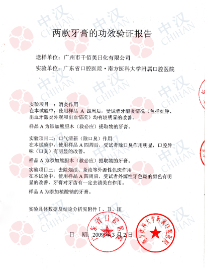 为了验证这种成分的功效,特地与内江第一人民医院合作研究实验,更加证明了加入了花椒麻素成分的牙膏,效果明显又安全。