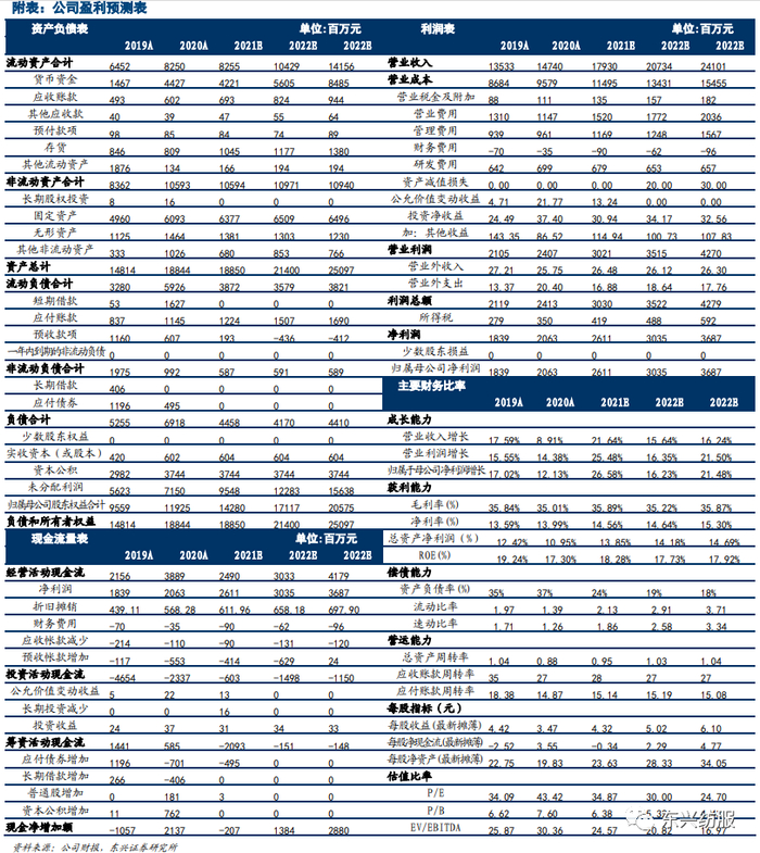 综上,预计公司2021-2023年实现营业收入179.30、207.34、241.01亿元,归母净利润分别为26.11、30.35、36.87亿元,对应EPS分别为每股4.32、5.02、6.10元。