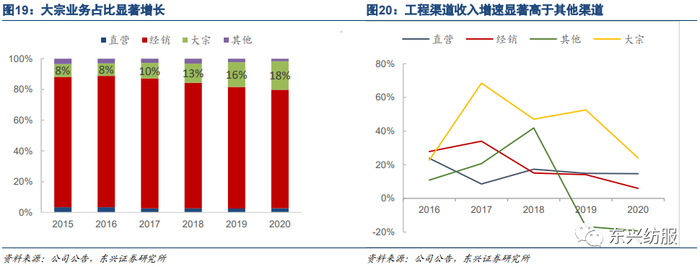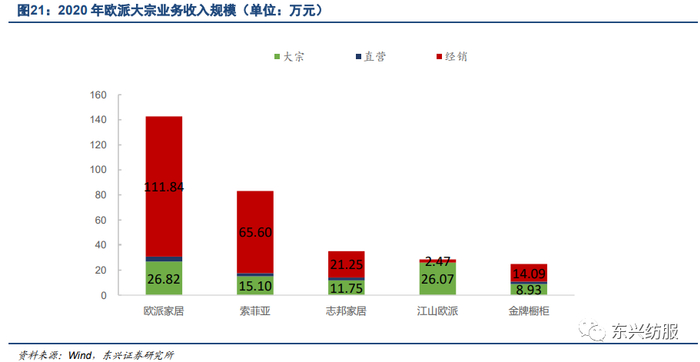 (2)分渠道。零售、整装推动经销店收入稳步增长,工程客户销售结转增加推动大宗收入增长提速。