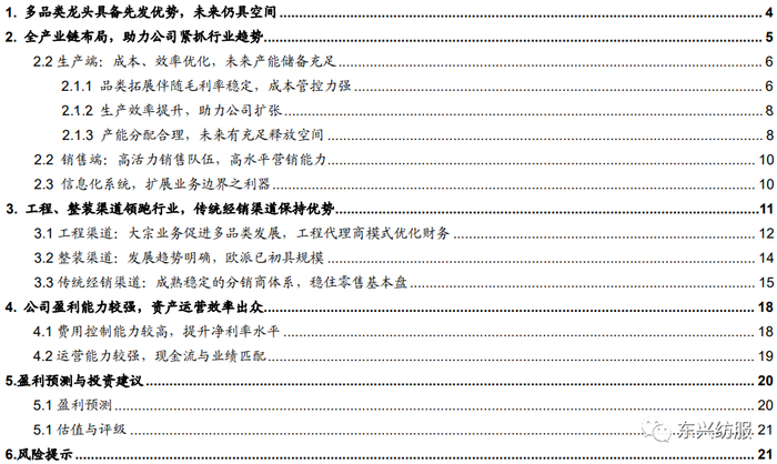 全产业链布局,助力公司紧抓行业趋势。公司自生产端到渠道端管理优质,对全产业链的强有力把控,使得公司在面临行业快速的变化的时候,能够抢占先机,始终走在竞争对手之前。
