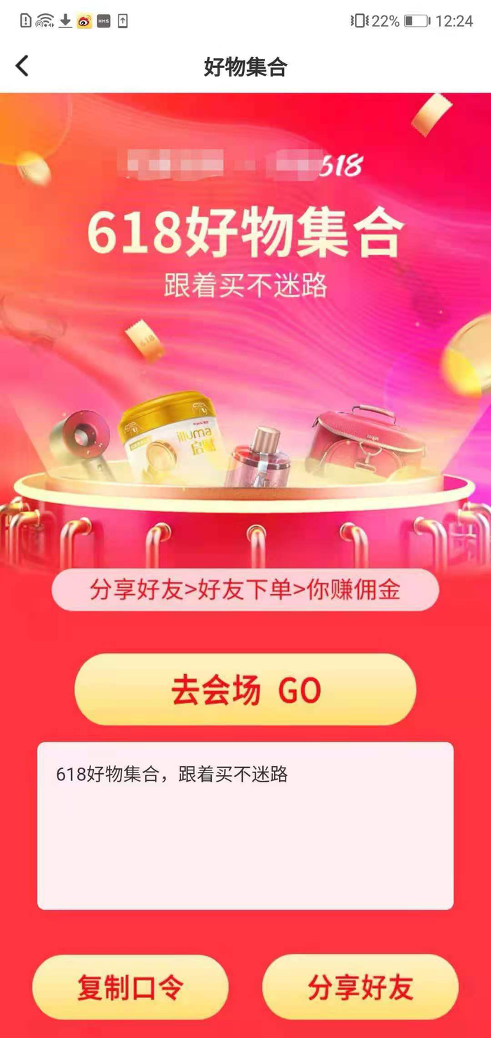 通过微信扫码并下载该App后,贝壳财经记者发现其索取了用户包括地理位置、相机、音频等在内的多个敏感权限。进入App后,虽然界面有包括“6·18热销好物”、“6·18免息购”、“预售免息福利”等信息,但并未有广告中声称的“0元购”和“新人免单”等信息,取而代之的是“下一单奖励0.8元、拉1人注册奖励1元”、“区块链生态圈竞拍夺宝”等涉及“拉新返佣”的内容。