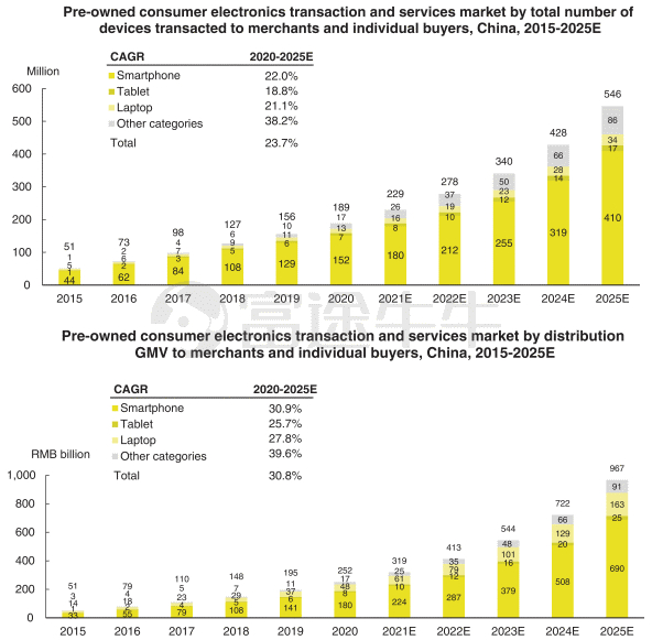 中国市场具有更多的设备、在更频繁地推出新机型,这也随之导致更频繁的更新换代,这为二手消费电子产品创造了一个更大的市场机会。