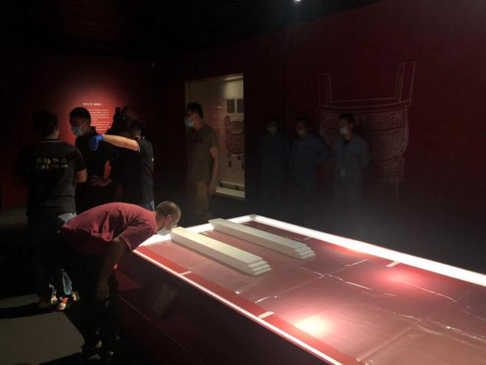 大克鼎原先的玻璃防护罩准备移开