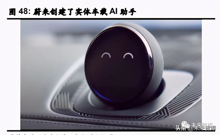 造车新势力在产品设计中强调车辆的智能化。他们开发了先进的语音控制系统,可以通过 持续的对话来拾取用户命令,从而重塑用户互动并提供出色的用户体验。我们认为,智能 座舱是新势力区别于传统车企竞争对手和特斯拉的的关键要素。我们认为蔚来和理想在智 能座舱开发方面处于领先地位。例如蔚来创建了可视化的车载 AI 助手“NOMI”,而理想则凭 借具有 APP 兼容性强的多屏解决方案脱颖而出。