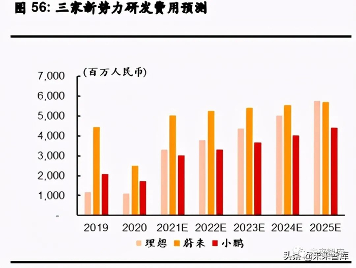 短期内,由于小鹏汽车在自动驾驶研发速度方面处于领先地位(小鹏汽车在 2021 年 1 月推 出了 L3 级 NGP,而蔚来汽车和理想汽车将从 2022 年起将推出相同级别的功能),我们预 计小鹏汽车在研发方面将具有更高的研发效率。